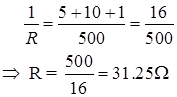 Resistance of water filter, R 3 = 500 ![]()