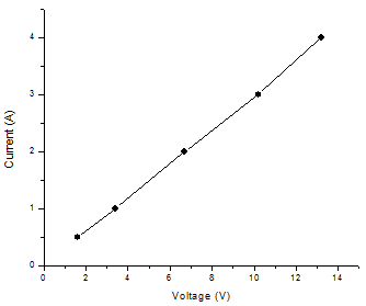 Plot a graph between V and I plotted by using the given data is shown below: