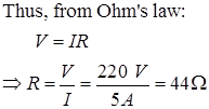 Here, Potential difference = is 220 V