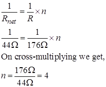 Now, we need to find the number of resistors should be connected in parallel to obtain a resultant resistance of 44. Suppose the number of 176 resistors required is ‘n’.