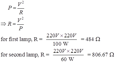 Given the power of the two lamps, we will calculate the resistances R1 and R2 of two lamps separately.