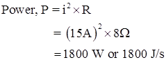Thus, the rate at which heat is developed in the heater is 1800 joules per second.
