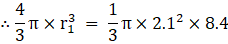 Now when it is melted to form a sphere, say of radius r1 cm, the volumes of both are going to be equal.