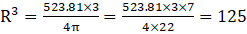 ⇒ 4/3 πR3 = 523.81 [∵, volume of larger sphere = 4/3 πR3, where R = radius of the larger sphere]