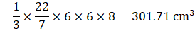 Thus, volume of the cone is 301.71 cm3 and curved surface area of cone is 188.57 cm2.
