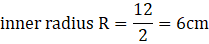 Thus, Volume of hollow space = πR2 h = 3.14 × (6)2× 100