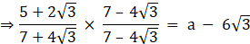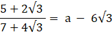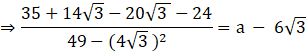 =⇒ 11 - 6√3 = a - 6√3⇒ a = 11
