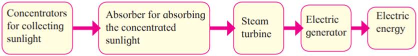 2. Reflectors reflect and concentrate solar radiation on absorbers. The solar energy is converted into heat energy, which is used to drive the turbine and generator hence producing electricity.