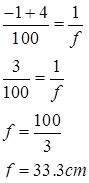 Image distance, v = -1 m (Near point of this defective eye) = -100 cm