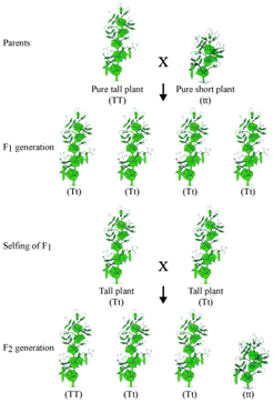 F2 generation- 3 tall:1 dwarf (Tt:tt)