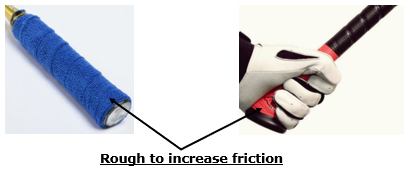 ⇒ As a result, there will be a better grip between handle of the bat and hands due to increased friction.