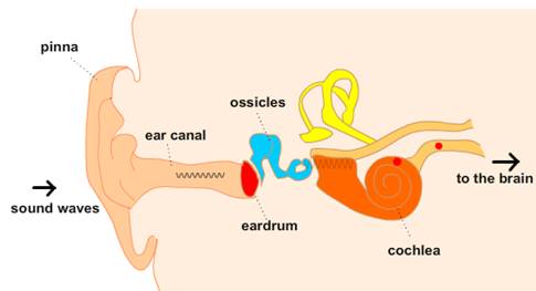 These vibrations enter in the ear and travels down a canal at the end of thin membrane called eardrum.