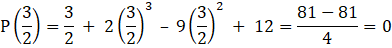 (i) (i) let p(x) = 69 + 11x −x2 + x3 and g(x) = x + 3 We have to prove that g(x) is factor of p(x) So the zero of g(x)= – 3 P( – 3) = 69 + 11( – 3) –( – 3)2 + ( – 3) 3 = 69 – 69 = 0 Since the remainder is zero g(x) = x + 3 is factor of p(x) (ii) Let p(x) = x + 2x3 – 9x2 + 12 and g(x) =2x−3 We have to prove that g(x) is factor of p(x) So the zero of g(x)= 3/2 Since the remainder is zero ∴ g(x) is factor of p(x)![]()