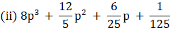 (i) 1−64 (i) Given that: 1 – 64a3 – 12a + 48a2 = (1)3 + (−4a)3 + 3(1)2(−4a) + 3(1)(−4a)2 = (1 + (−4a))3 [∵ a3 + b3 + 3a2b + 3ab2 = (a + b)3] = (1 – 4a)3 = = (2p)3 + (15)3 + 3(2p)2(15) + 3(2p) (15)2 = (2p + 15)3 [∵ a3 + b3 + 3a2b + 3ab2 = (a + b) 3]![]()