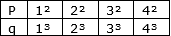 If we multiply p and q with 1,2,3 and 4, we get the given result. But it is not given inversely.