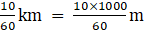 = [1h = 60min and 1km = 1000m]