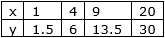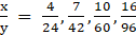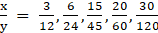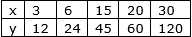 From the following table, determine if x and y are in direct proportion or not.
