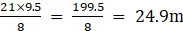 A water tank casts a shadow 21 m long. A tree of height 9.5 m casts a shadow 8 m long at the same time. The lengths of the shadows are directly proportional to their heights. Find the height of the tank.