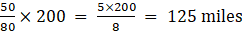 Kusum always forgets how to convert miles to kilometres and back again. However, she remembers that her car’s speedometer shows both miles and kilometres. She knows that travelling 50 miles per hour is same as travelling 80 kilometres per hour. To cover a distance of 200 km, how many miles Kusum would have to go?