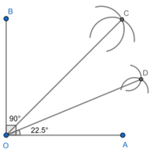 Step 3:Bisect ∠AOC, such that ∠AOD = ∠COD = 22.5°