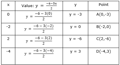 For graph, we’ll first make the table of solutions by putting some random values of x and thereafter we’ll find corresponding values of y and then we’ll plot these points on graph, join them and extend them in straight line to find the graph.