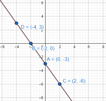 ⇒ ∴ the pts. Where graph cuts the co-ordinate axis(i.e., where x = 0 and where y = 0) are pt. A = (-2,0) and pt. B = (0,-3).