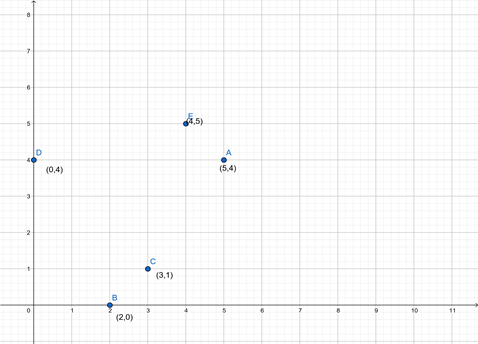 Draw the x and y axis then plot the given points according to the coordinates.
