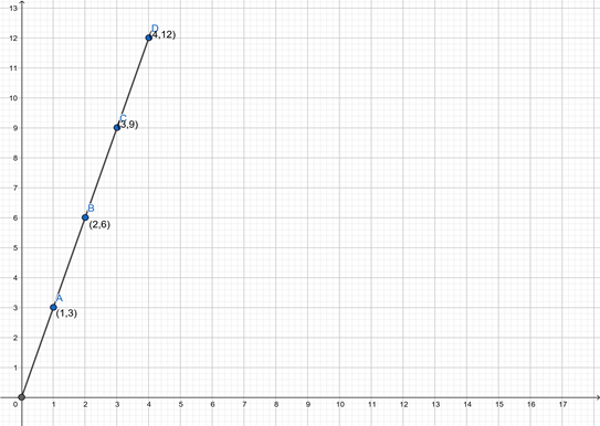 If y-coordinate is 3 times x-coordinate, form a table for it and draw a graph.