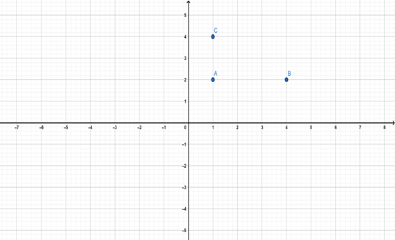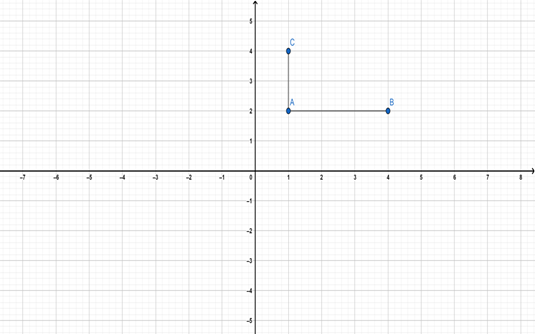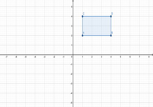 ∴ The coordinates of point D, to complete the rectangle ABCD are D (4, 4).