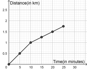 Let us draw a graph as per given chart. Let the time taken by dhruv walking on a road is in X axis and distance in Y axis.