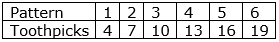 Pattern and toothpicks are related as follows