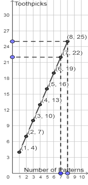(c) Use your graph to predict the number of toothpicks in patterns 7 and 8. Check your answers by actually drawing them.