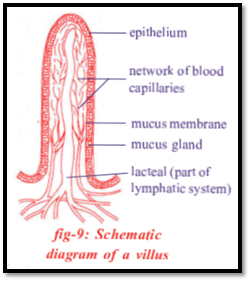 Draw a schematic diagram of villus in small intestine. Explain how digestive system coordinate with circulatory system. (AS5)