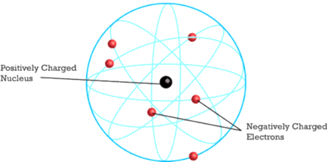 The Rutherford model described the atom as a tiny, dense, positively charged core called a nucleus, in which nearly all the mass is concentrated, around which the light, negative constituents called electrons circulate at some distance.