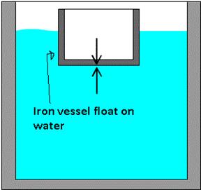 As you can clearily see in the figure that the shape of iron veseel is such that the weight of water displaced is much more then the weight of iron vessel itself.