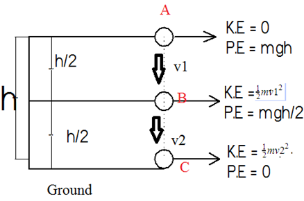 At B velocity v = v1 ,Kinetic Energy will be and Potential Energy will be mgh/2