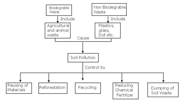 Prepare flow chart to describe soil pollution, causes and methods of control. (AS 5)