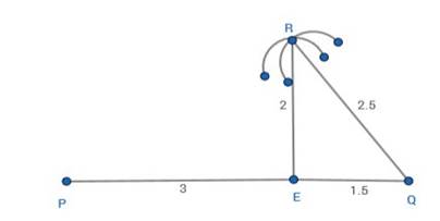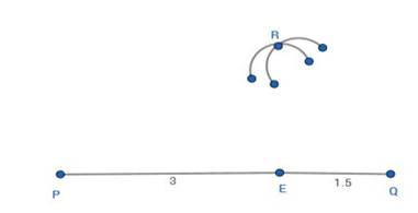 Step 2 : Mark a point E on PQ such that PE = 3cm and EQ = 1.5cm