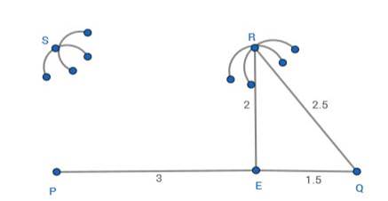 Step 8 : Draw a perpendicular on PQ from point R and name the intersection point as E
