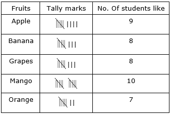 We can see that banana and grapes are liked by equal number of students i.e. 8 students.