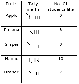 8 students like banana and grapes, 10 students like mango and 7 students like orange.