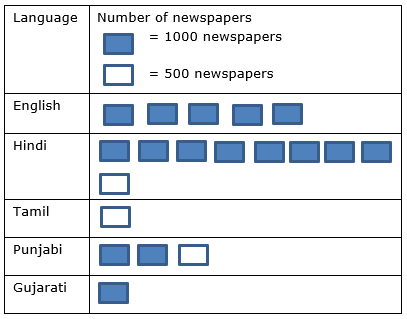 Number of English newspapers is 5000 which can be represented by 5 filled rectangles.