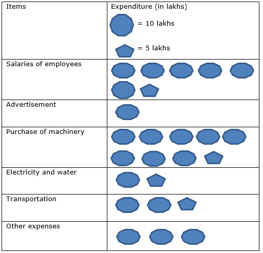Prepare a pictograph of the above data using an appropriate symbol to represent Rs 10 lakh.