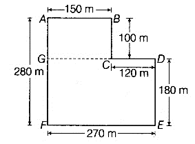 Divide the park shown in Fig. 6.17 of question 40 into two rectangles. Find the total area of this park. If one packet of fertilizer is used for 300sqm, how many packets of fertilizer are required for the whole park?