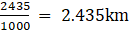 Convert 2435m to km and express the result as mixed fraction.