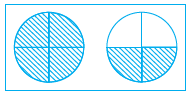 As we can see in the figure, there are two circles, when we divide the circles into two halves we get 4 parts. Therefore both the circles are divided into 4 halves.