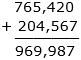 Find the sum of the greatest and the least six digit numbers formed by the digits 2, 0, 4, 7, 6, 5 using each digit only once.
