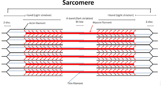 Muscle is a soft tissue found in most animals. They are responsible for maintaining and changing posture, locomotion. Skeletal muscles are enclosed by a tough layer known as epimysium. Within the epimysium are numerous bundles called fascicles, each of which contains many muscle fibers collectively enclosed by the layer perimysium. These muscle fibres contain muscle cells which are further divided into myofibrils. Myofibrils are complex strands of protein filaments organized together into repeating units called sarcomeres. Hence, a sarcomere is the basic contractile unit of a muscle.