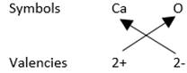 While writing the chemical formulae for compounds, we write the constituent elements or their symbols and their valencies as shown below. Then we must crossover the valencies of the combining atoms. The positive and negative charges must balance each other and the overall structure must be neutral.
