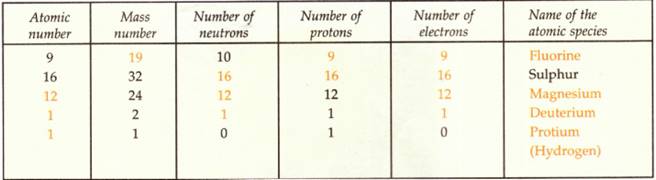 (ii) Mass number is equal to the sum of the number of protons and neutrons. Therefore, mass number = 9 + 10 = 19.